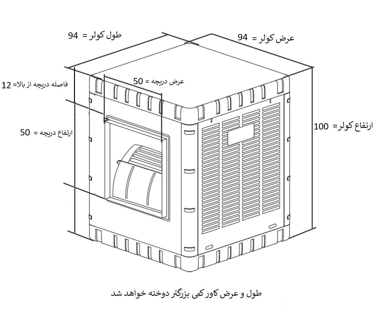 عنوان محصول : کاور کولر آبی پلیمری ایرومکس 8000 دریچه کنار AM80 جنس برزنت 0150
